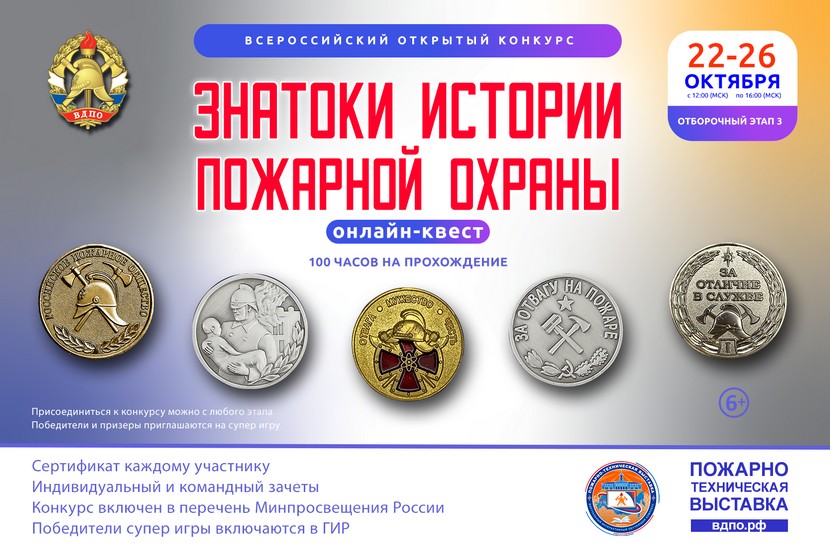 Принять участие в онлайн-квесте «Знатоки истории пожарной охраны. Отборочный этап №3» (сезон 2025/2026) может любой желающий в индивидуальном формате в любое время с 12:00 (мск) 22 октября 2025 по 16:00 (мск) 26 октября 2025.